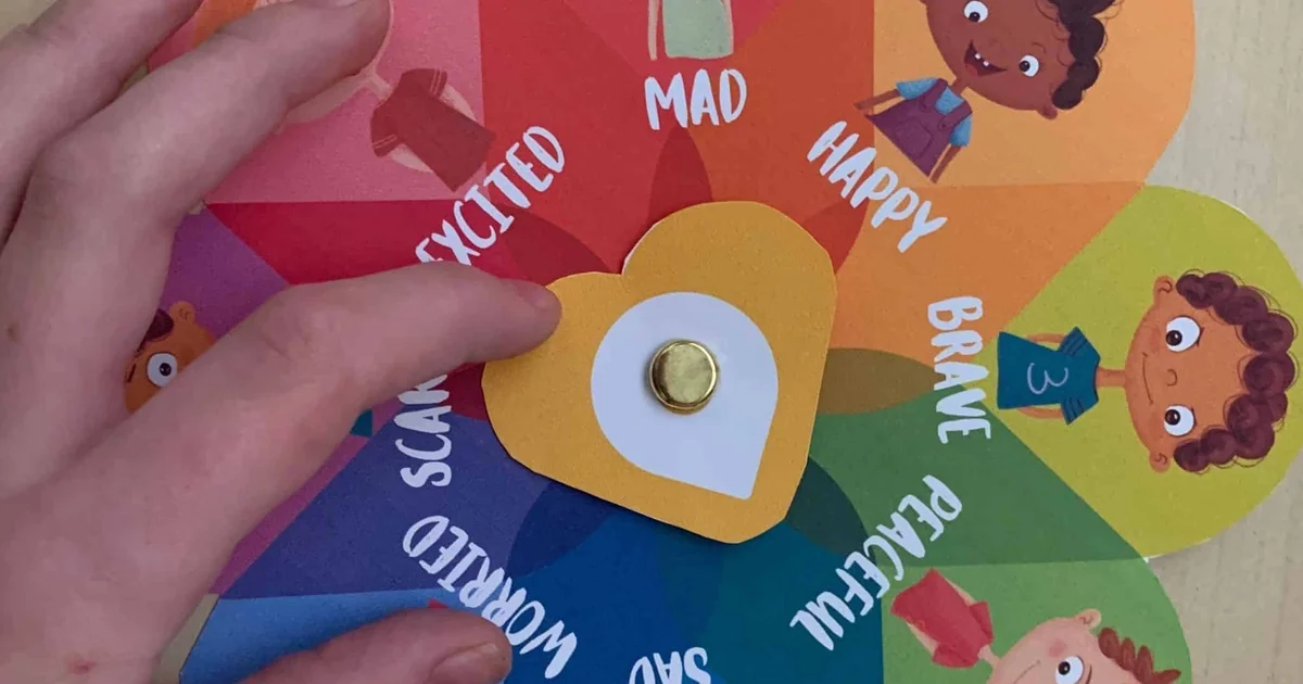 - When your child has a big emotion, hand them the feeling wheel and ask them to find the one showing their feelings.